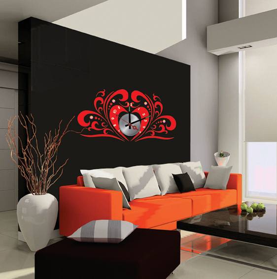 Reusable Home Decor Acrylic Heart Wall Sticker Clock 10D047